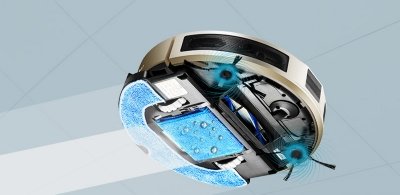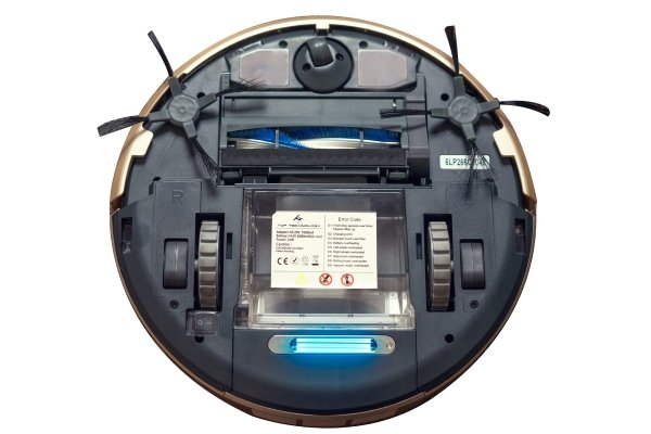 Бесшумный бесщёточный двигатель, скорость вращения которого 16000 оборотов в минуту обеспечивает этому роботу мощную силу всасывания