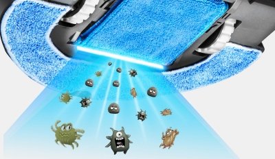 В нижней части корпуса встроена скрытая ультрафиолетовая лампа, которая эффективно убивает микробы, содержащиеся в пыли на поверхности пола.