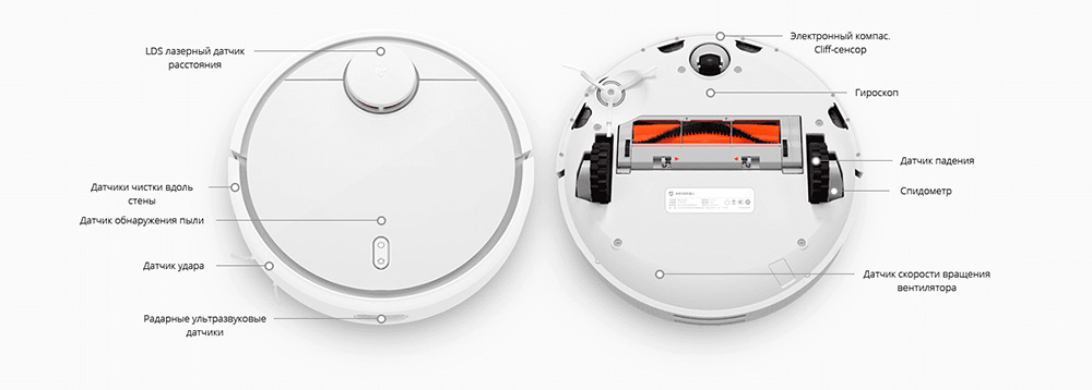 Глазами пылесоса Xiaomi Mi Robot Vacuum является датчик LDS, который позволяет сканировать помещение на 360 градусов 1800 раз в секунду и точно определять расстояние до объектов. Также он доставляет информацию об имеющихся на пути препятствиях