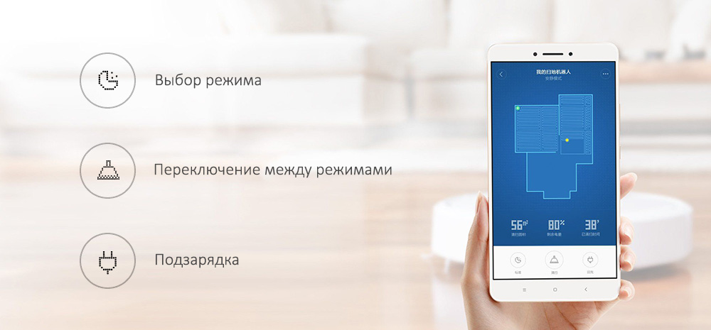 С помощью приложения MIJIA Вы сможете в любое время проверить состояние уборки, а также просмотреть ее маршрут. Кроме того, вы также можете распланировать уборку, например, можете установить время уборки раньше возвращения с работы, чтобы, вернувшись, насладиться идеальной чистотой.Помимо того, вы сможете выбрать один из трех различных режимов уборки: тихим, стандартным и интенсивным.